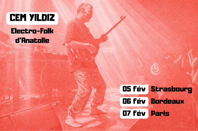 Le shamane électro d’Anatolie Cem Yıldız entame une tournée dans trois villes de l’hexagone. Trois soirées bouillonnantes qui vont notamment marquer la rencontre de deux figures de la scène musiques du monde et électro : CEM YILDIZ & GUIDO MINISKY (Acid Arab).