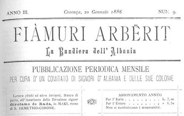 En 1883, « un comité de notables albanais » entreprit de publier à Corigliano Calabro (Italie) une revue mensuelle en italien et en albanais : Fiamuri Arbërit (Le Drapeau de l’Albanie), dont le premier numéro parut le 20 juillet. En réalité, ce périodique était dû aux sacrifices personnels de G. de Rada, qui en était à la fois directeur responsable, rédacteur et administrateur.