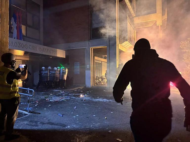 3 novembre - 7h15 : Lors de la manifestation de soutien à Dijana Hrka, la mère d’une des seize victimes de l’effondrement d’un auvent à Novi Sad il y a un an, qui a entamé une grève de la faim dimanche, de violents incidents ont éclaté dans le centre de Belgrade, des engins pyrotechniques ayant été lancés sur les manifestants depuis le « Ćaciland », où se rassemblent les partisans du gouvernement.