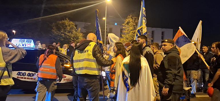 Un peu avant 17 heures, les partisans du SNS, installés dans leur campement, ont commencé à diffuser à plein volume des chants nationalistes, tandis que les partisans de Dijana Hrka répondaient par des huées, des coups de sifflet et des bruits de casseroles.