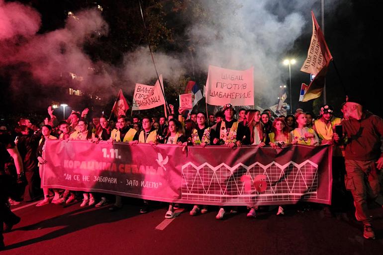29 octobre - 17h40 : Des milliers de citoyens de Belgrade ont salué le départ des étudiants de Novi Pazar, qui se dirigeaient à pied vers Novi Sad le 29 octobre, pour le rassemblement commémoratif prévu le 1er novembre dans cette ville. Les étudiants de Novi Pazar, à Belgrade, ont passé la nuit chez des habitants qui les ont hébergés.