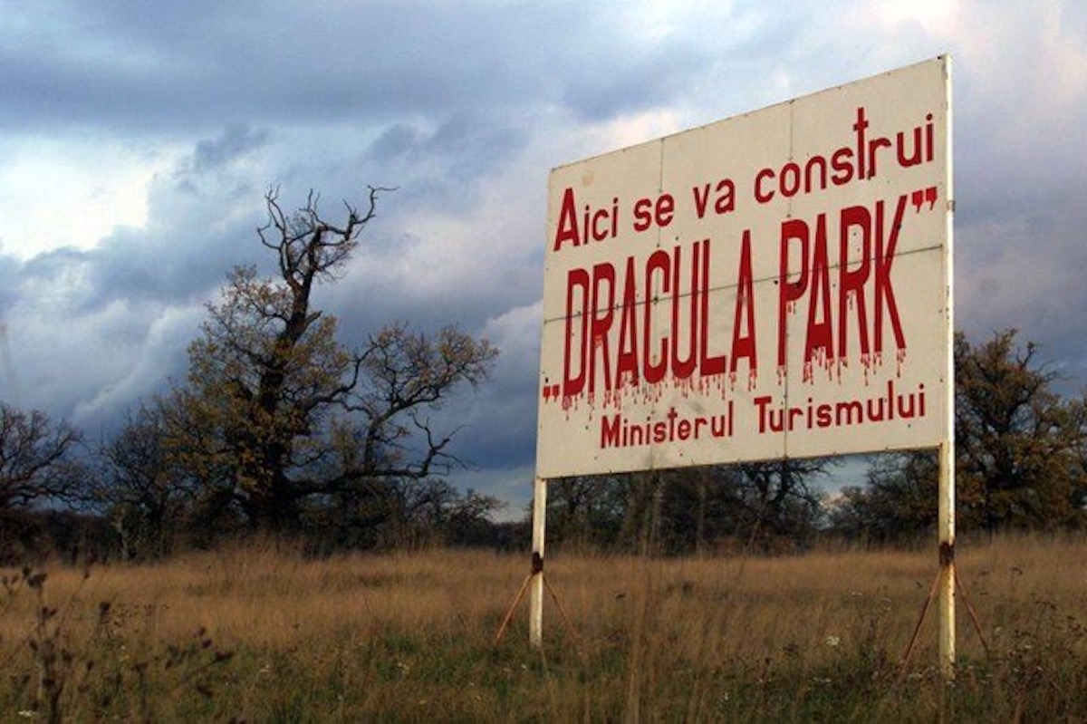 Il est difficile de savoir s’il se référait au fait que Vlad l’Empaleur n’a jamais régné en Transylvanie ou bien à l’un des plus grands scandales politico-financiers de ces vingt dernières années en Roumanie. En 2001, Dan Matei Agathon, alors ministre du tourisme, lance une souscription publique pour la réalisation d’un Dracula Park sur le plateau de Breite, une réserve naturelle protégeant une forêt de chênes centenaires, de hêtres et de bouleaux près de Sighișoara, la prétendue ville natale de Vlad l’Empaleur. Sur une cinquantaine d’hectares, un château, un hôtel, des restaurants, des bars, des magasins de souvenirs et un pompeux Institut international de vampirologie doivent former le plus grand parc d’attractions d’Europe de l’Est.