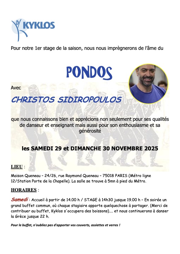 Paris (75018) Stage de danse : Pondos, avec Christos Sidiropoulos Kyklos | Du 29 novembre 2025 au 30 novembre 2025